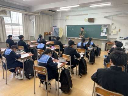 先生の自己紹介が行われ、自身の名前の由来などについて聞いています。