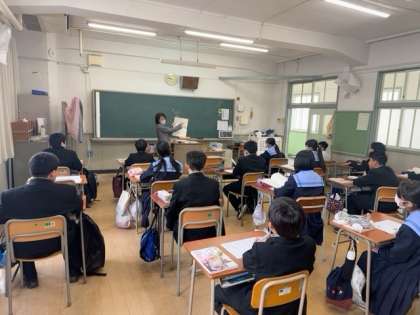 ノートの使い方や授業の進め方についての説明を聞いています。
