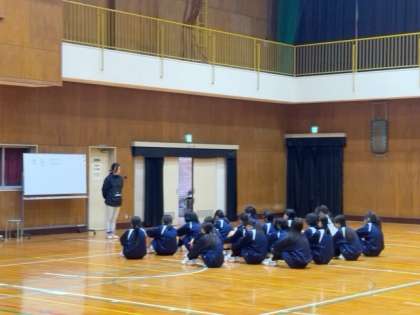 男子は運動場で、女子は体育館で授業がはじまりました。