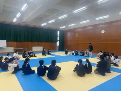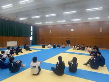 「バースデーリング」に取り組んでいます。会話をせずに誕生日順に輪になることにチャレンジしています。