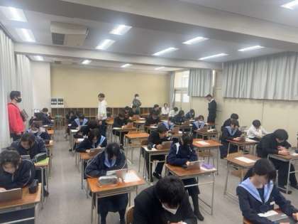 生徒質問紙調査に引き続き、理科のテストを学習者端末で行う「CBT」で取り組んでいます。