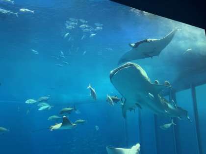 大水槽のジンベイザメやマンタは、とても大きく圧巻です。