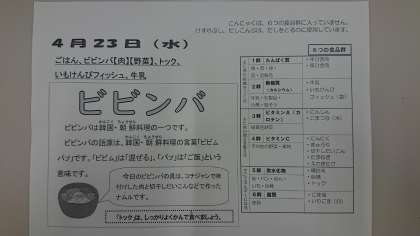 4月23日(水曜日)の給食です!