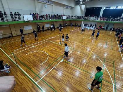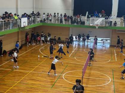 この4月に同好会から部活動になったバドミントン部ですが、同好会から活動していた2・3年男子が初めての公式戦に出場しました。