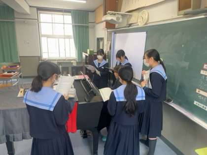 パートごとにわかれて、合唱の練習に取り組んでいます。