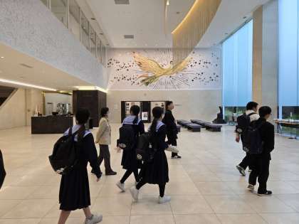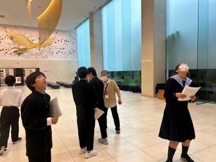 目的地の1つである立命館大学平和ミュージアムをグループごとに訪問して見学しています。
