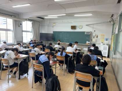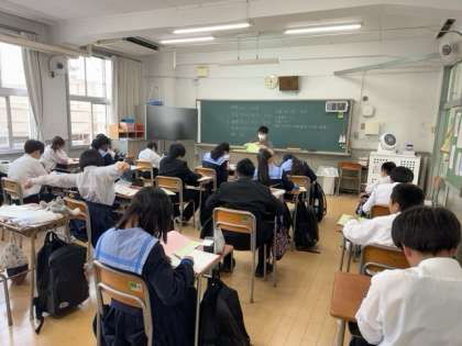 今日の1年生のテストは、2時間目から行われます。よって1時間目は、自習の時間として、2時間目以降のテストに備えています。