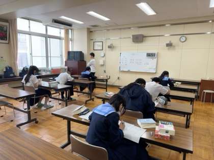 日本語指導が必要な生徒は、別室にて、るびうち問題、辞書持込、1.3倍の時間延長といった配慮を行って、テストに取り組んでいます。