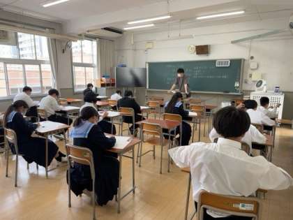 3時間目は、英語のテストです。リスニングテストも行われています。