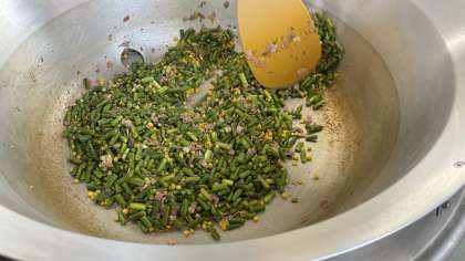 今日はグリーンアスパラガスのソテーです。旬真っ盛りのアスパラガスの、爽やかな風味としゃきしゃきとした食感を存分に楽しむことができる一品です。