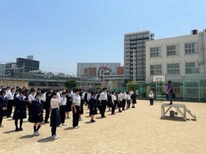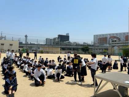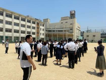 テスト終了後の4時間目に火災を想定した避難訓練に取り組みました。