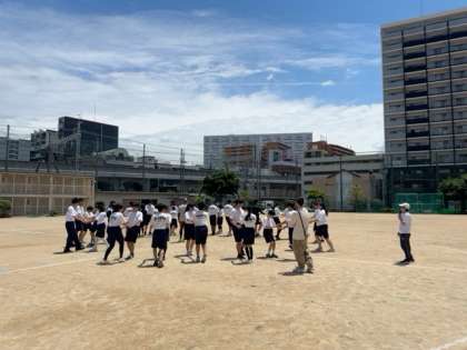 体育大会の集団演技の練習に取り組んでいます。早くマスターして後輩にいい見本が見せられるといいですね。