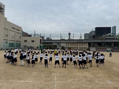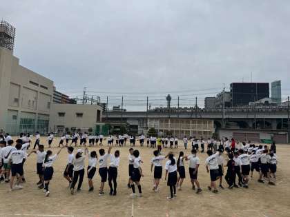 全校生徒で行う集団演技の練習に取り組んでいます。