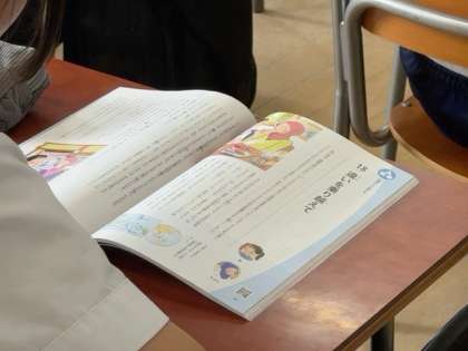 1組は「違いを乗り越えて」、2組は「言葉の向こうに」という読み物教材に取り組みました。