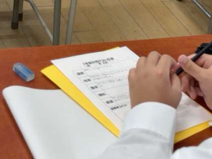 先週行われた1学期中間テストの結果を振り返って、反省して、次の期末テストに向けての課題を各自で明らかにしています。