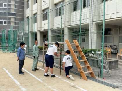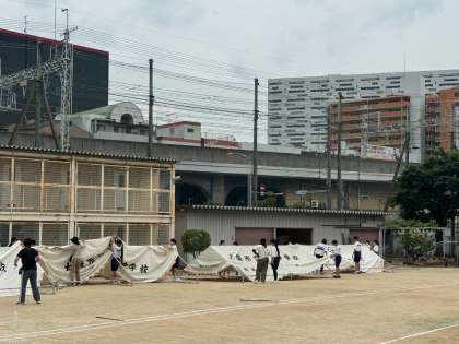 午後からは体育大会の会場設営準備を全校生徒で取り組んでいます。雨の予報が出ているため、できるところまでの準備となります。みんなが協力的に取り組んでくれています!
