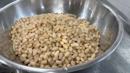 今日はてぼ豆のスープです。普段目にすることの少ないてぼ豆ですが、実は食物繊維や炭水化物が豊富な、成長期にぴったりの食材です。