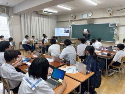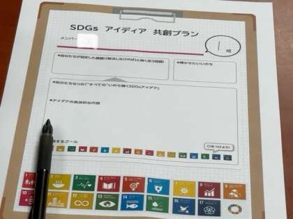 グループごとにSDGSについて考え、どのような社会を作っていきたいかについて話し合っています。