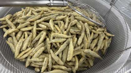小ぶりないわしを丸ごと揚げて、甘酸っぱいタレを絡めて仕上げます。