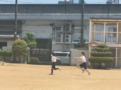 引き続き、リレーのバトンパスの練習に取り組んでいます。