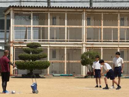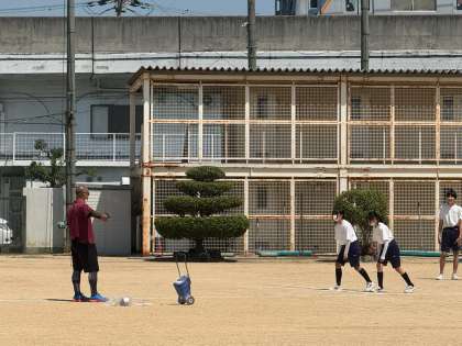 運動場で90m走を測定しています。前回よりも速くなっているでしょうか。