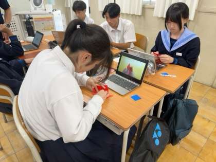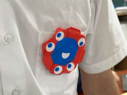 今週木曜日に全校で参加する万博招待事業に向けて、当日体操服の胸の名前刺繍を隠すための、ミャクミャクの折り紙バッジを動画で教えてもらいながら作っています。