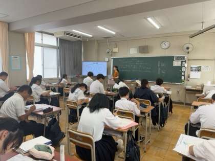 物質の最小単位である「原子」の構造を学習しています。電子や中性子などのしくみを学んでいます。目に見えない小さなことなので想像しにくいことですね。