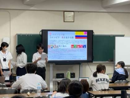 万博招待事業の事前学習調べた参加している国や地域について互いに発表しあいました。
