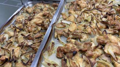 鶏肉と玉ねぎをカレー粉で香りよく仕上げた、パンにもごはんにも合う一品です。