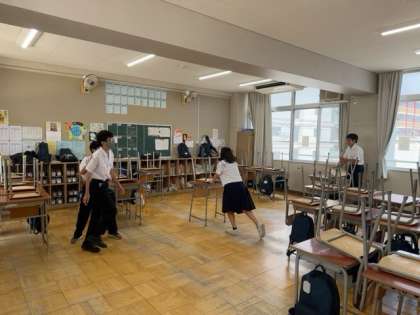 期末テストが終了したのち、3時間目に「大清掃」に取り組んでいます。教室などを普段よりも丁寧に掃除しています。