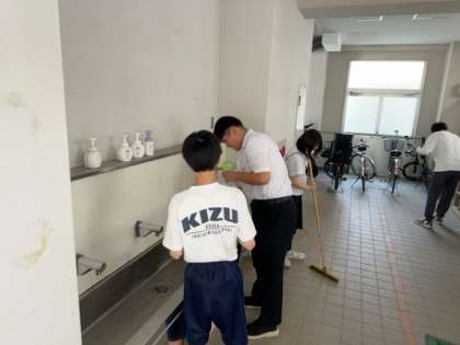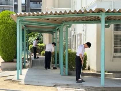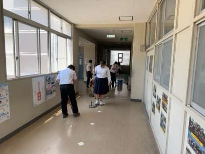 期末テストが終了したのち、3時間目に「大清掃」に取り組んでいます。普段できない外や廊下などを丁寧に掃除しています。