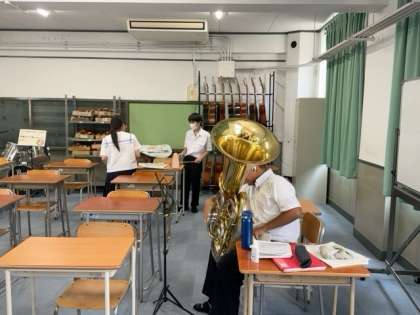 吹奏楽部も活躍再開しています。7月に入ると、近隣校と合同で演奏する「なにわっ子音楽会」や「大阪府吹奏楽コンクール」などが控えています。頑張ってください!