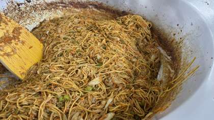スパイスの効いた具沢山のスパゲッティは、暑い夏でも人気の一品です。