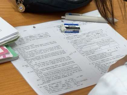 9月に行われる中学生チャレンジテストに向けて、過去問題に取り組んでいます。