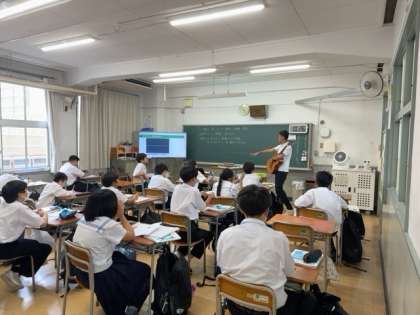 ギターを使って、音の種類について学習しています。