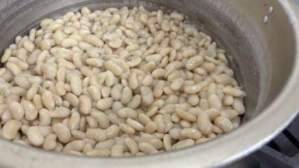 今日は大福豆の煮ものです。ゆっくりと火を通した大福豆はほくほくとした食感に仕上がります。