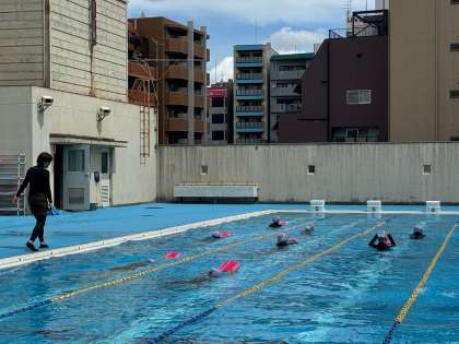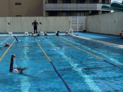 男子は背泳ぎの練習に取り組んでいます。