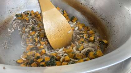 今日はかぼちゃのミートグラタンです。今が旬のかぼちゃをミートソースで絡め、オーブンで焼き上げます。