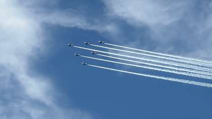 【大阪関西万博】学校の上空にブルーインパルスが飛来しました!