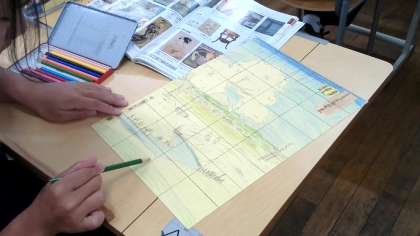 教科書に掲載されている絵画を1つ選んで、「模写」に取り組んでいます。着彩は「色鉛筆」で行っています。