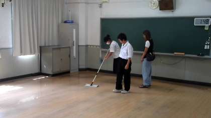 放課後に、風紀委員さんによって、教室のワックスがけがに取り組みました。