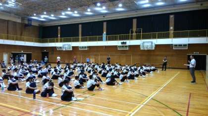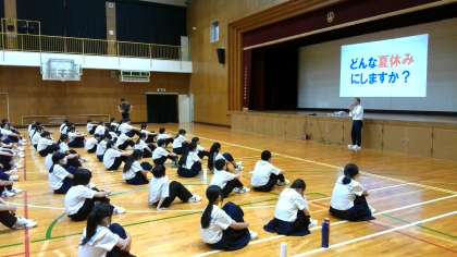 体育館で1学期の終業式を行いました。