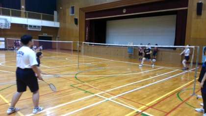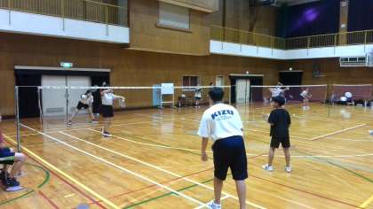 バドミントン部は、本校体育館に、大阪市立難波中学校と大阪市立港中学校を招いて、練習試合に取り組みました。