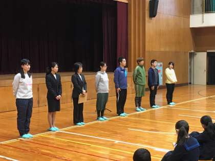 きょうの始業式では、まず始めに前期生徒会執行部の認証式が行われました。