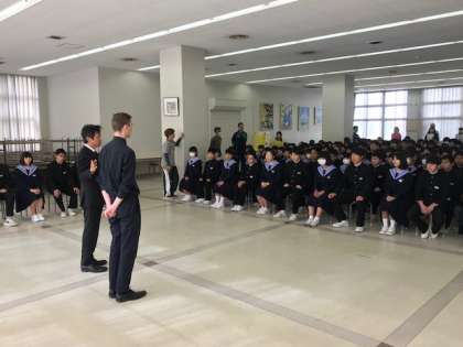 今朝の全校集会で、毎週金曜日に来ていただくC-NETの先生の紹介がありました。