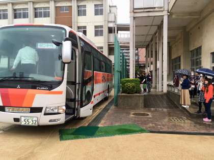 朝6時半の出発式には、PTA会長様をはじめ、多くの保護者様にお見送りに来ていただき、ありがとうございました。
