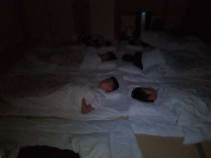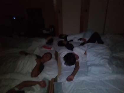 子どもたちは、今日一日頑張ったので、やはり疲れているようです。どの部屋もご覧のとおり爆睡です。本日の報告は、これまでとさせていただきます。また明日も、リアルタイムで様子をお伝えしたいと思います。お楽しみに。