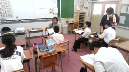 チャレンジ学級では、夏休み期間の一部を使って「学習会」を開催しています。今日も数名の生徒が勉強をしにきています。頑張ってまますね!