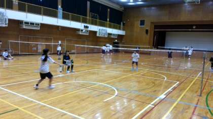 登校日を終えた午後、体育館で練習に取り組んでいます。先日の公式戦を経て、さらなるレベルアップを図っています。