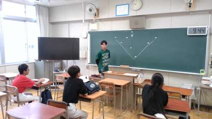 今日(8月7日)は雨なので、運動場での練習は行わず、教室で、図面をつかって、守備の動きの確認などを学んでいます。